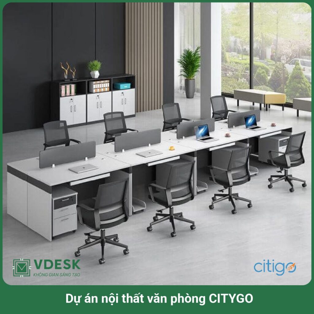Với vai trò kiến tạo nên không gian văn phòng chuyên nghiệp, Nội thất Vdesk thực hiện thành công nhiều dự án cung cấp nội thất cho các đơn vị, doanh nghiệp trên nhiều tỉnh khắp cả nước. Vdesk vừa cung cấp và lắp đặt hoàn thiện trọn gói nội thất cho Công ty Citygo tại Hà Nội.