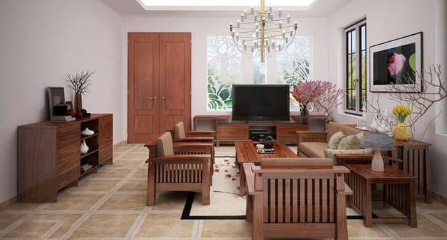 Gỗ gụ là vật liệu được ưa chuộng trong lĩnh vực nội thất nhờ độ bền cao và màu sắc trang nhã. Chất liệu này thường được sử dụng để chế tác các sản phẩm như tủ, kệ, bàn trà, sofa và nhiều loại đồ nội thất khác. Thiết kế từ gỗ gụ đa dạng về kiểu dáng, phù hợp với nhiều phong cách kiến trúc, từ cổ điển đến hiện đại.