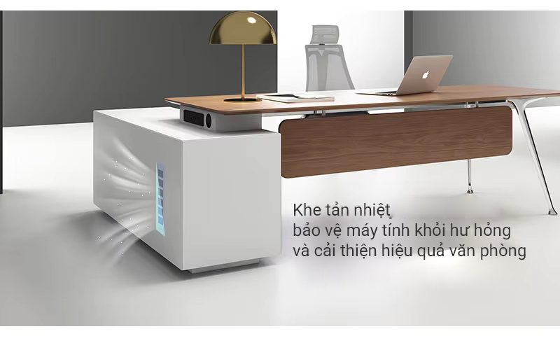 - Tiện Lợi: Thiết kế thông minh với không gian để chân rộng rãi và khả năng lắp đặt thêm các phụ kiện như kệ CPU, khay bàn phím.
