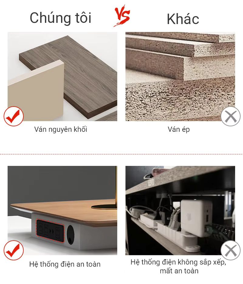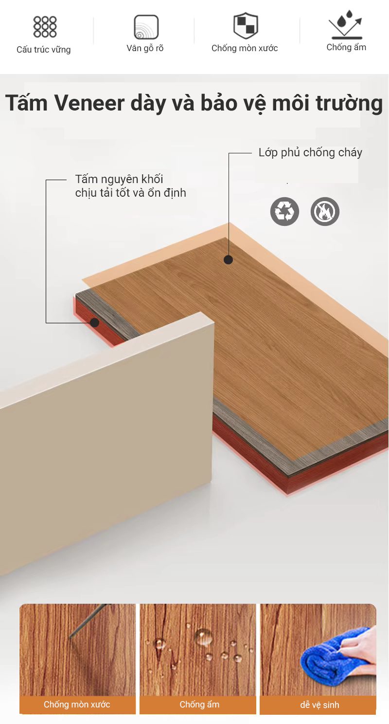 - Chất Liệu Cao Cấp: Mặt bàn làm từ gỗ công nghiệp MDF phủ melamine, chống trầy xước, chống thấm nước và dễ dàng vệ sinh.