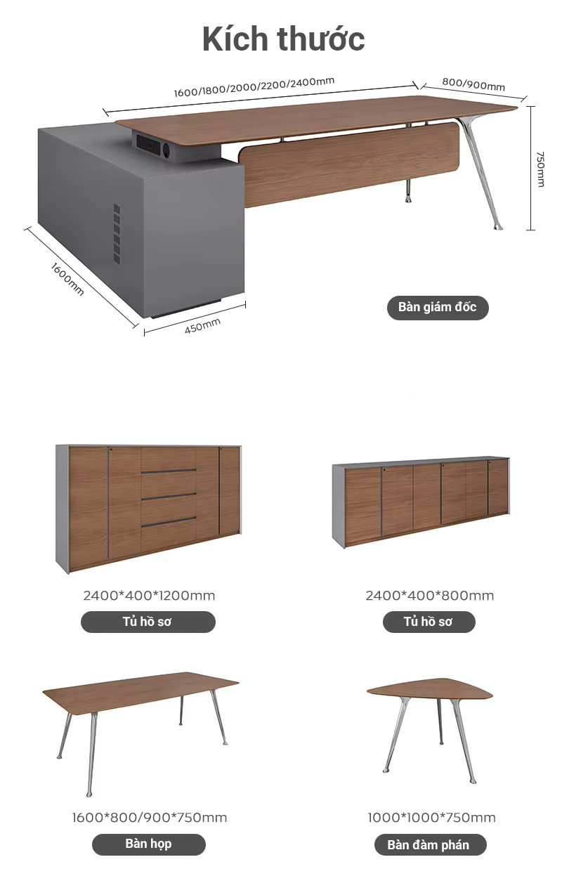 - Kích Thước: Tùy chọn các kích thước phổ biến như 1200x600x750mm, 1400x700x750mm, 1600x800x750mm hoặc theo yêu cầu.