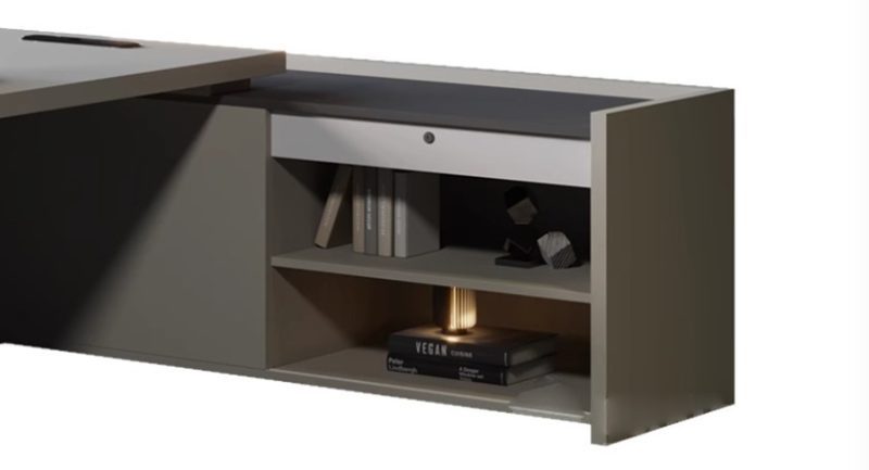 - Tiện nghi tối ưu: Thiết kế tích hợp tủ phụ giúp tổ chức tài liệu, vật dụng cá nhân một cách khoa học, mang lại sự gọn gàng và chuyên nghiệp.