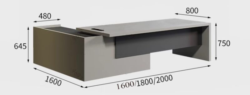 - Kích thước này mang lại không gian làm việc rộng rãi, tiện nghi, đồng thời tích hợp tủ phụ để lưu trữ tài liệu gọn gàng.