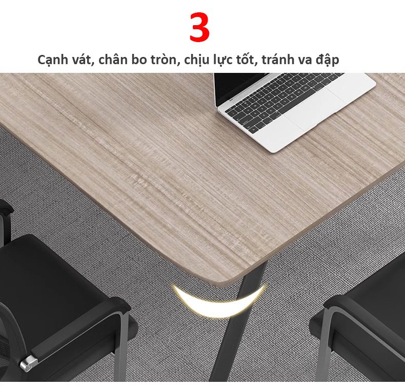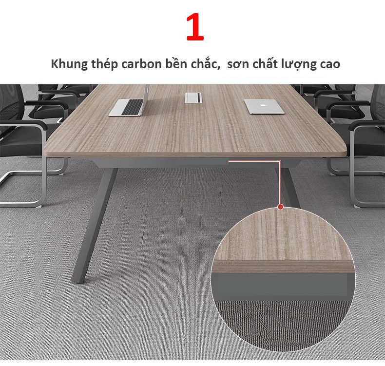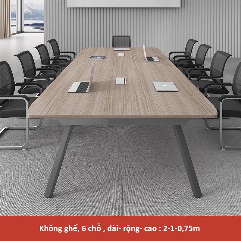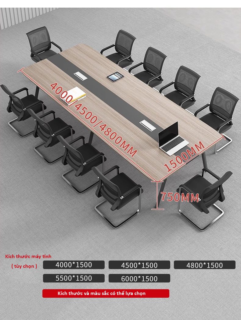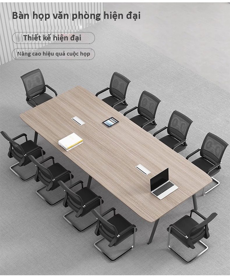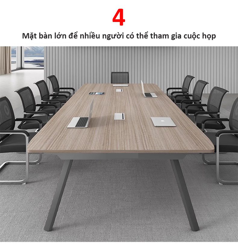 - Thiết kế linh hoạt: Bàn hình chữ nhật với kích thước đa dạng, phù hợp cho các nhóm từ 6 đến 20 người, tối ưu hóa không gian phòng họp.