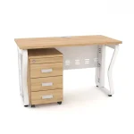 - Chất liệu: Khung thép sơn tĩnh điện, mặt bàn gỗ melamine