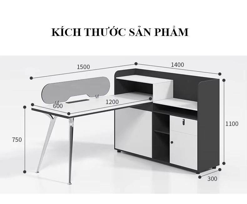 Cụm bàn làm việc 2 người sở hữu kích thước tối ưu: Dài 1400mm x Rộng 1200mm x Cao 1100mm, tạo không gian làm việc thoải mái cho hai người. Mặt bàn được phủ lớp melamine cao cấp, chống ẩm mốc, không bám bụi và dễ dàng vệ sinh hàng ngày. Điều này giúp sản phẩm luôn bền đẹp theo thời gian, đồng thời giảm thiểu công sức bảo quản.