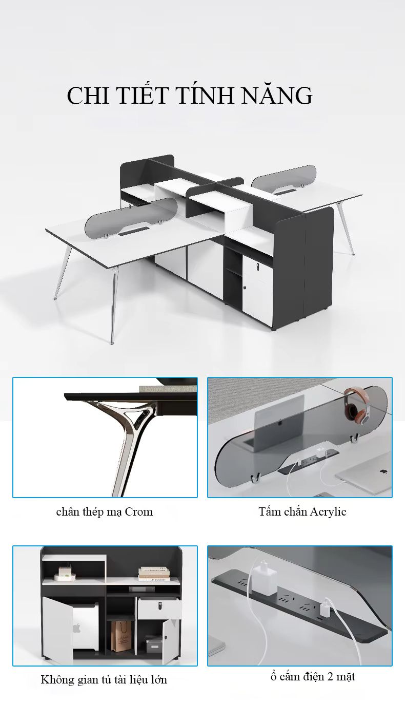Đặc biệt, thiết kế vách ngăn tiện lợi giúp tạo không gian riêng tư cho từng cá nhân, nhưng vẫn đảm bảo sự kết nối giữa các thành viên trong nhóm. Đây là yếu tố quan trọng giúp tăng hiệu suất làm việc và duy trì môi trường chuyên nghiệp.