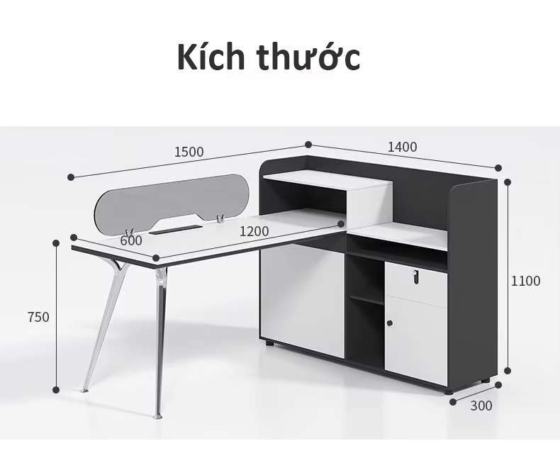 - Kích thước tiêu chuẩn: 1200mm (rộng) x 600mm (sâu) x 750mm (cao) cho mỗi chỗ ngồi.
