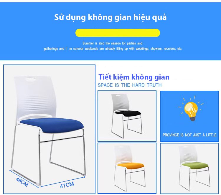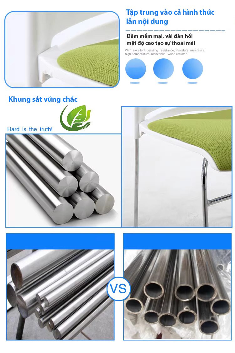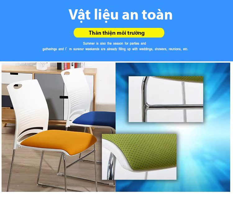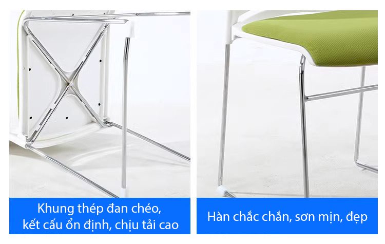 - Chất liệu bền bỉ: Lưng ghế làm từ nhựa cao cấp, chân ghế mạ crom sáng bóng, đảm bảo độ bền và khả năng chịu lực tốt.