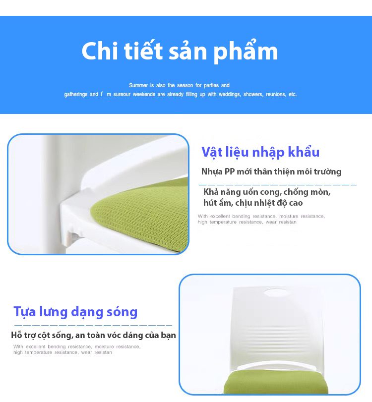 - Chất liệu lưng ghế: Nhựa cao cấp