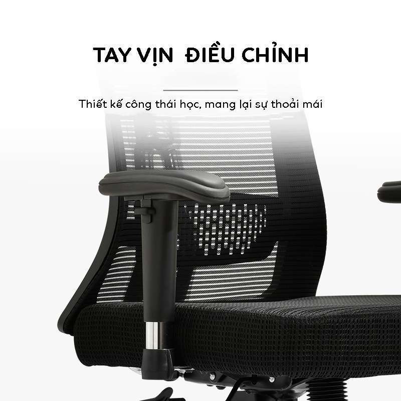 - Tay vịn cố định: Thiết kế phù hợp với tư thế ngồi, hỗ trợ cổ tay và giảm mỏi khi làm việc lâu.
