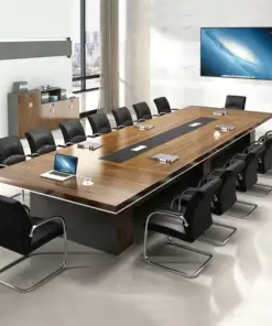 Chiếc bàn họp văn phòng Lusso 4m8 được thiết kế với kích thước lý tưởng W4800 x D1560 x H760 mm , phù hợp cho các phòng họp lớn hoặc không gian làm việc chuyên nghiệp. Sản phẩm nổi bật với chất liệu ván gỗ sợi MDF phủ Veneer gỗ sồi đen tự nhiên của thương hiệu Bunny danh tiếng. Chất liệu này không chỉ mang lại vẻ đẹp sang trọng, thanh lịch mà còn đảm bảo độ bền vượt trội theo thời gian.