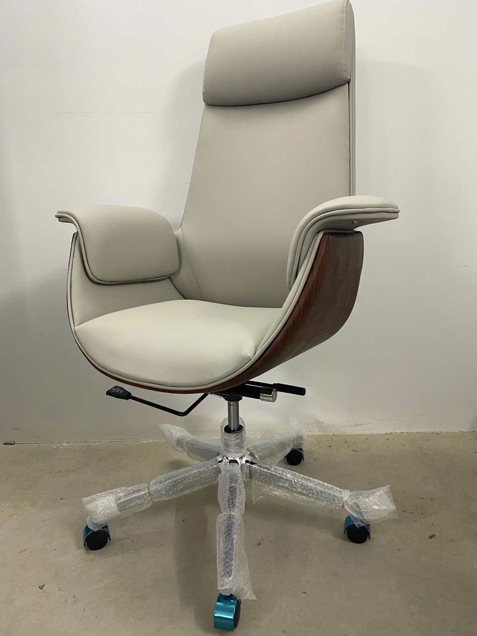 - Chân ghế vững chãi: Chân sao mạ crom sáng bóng, kết hợp với bánh xe xoay 360 độ, giúp di chuyển linh hoạt và dễ dàng.