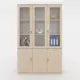 - Phía trên gồm 3 ngăn tủ cánh kính, phù hợp trưng bày tài liệu hoặc vật dụng trang trí.